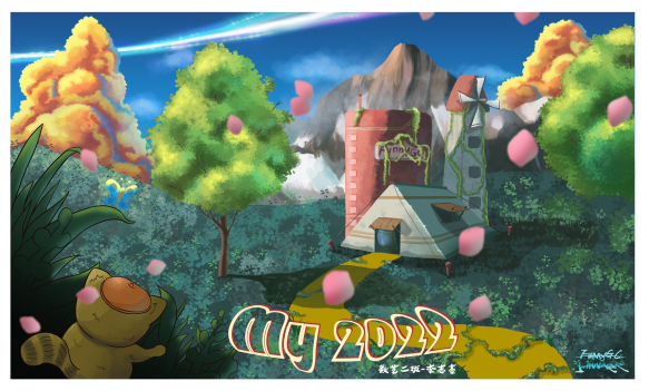 我的创作题目是“我眼中的2022”,从题目角度出发,我起初的创作想法就是把我脑中所向往的一种生活形式,通过转变把它变现的表达出来。