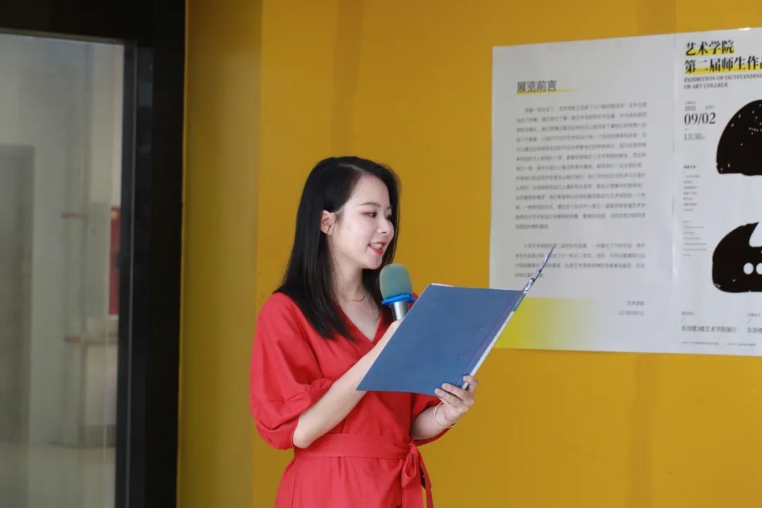 展览在9月2日下午进行了开幕仪式,参加开幕式的嘉宾有:华新学院纪委书记、工会主席邓忠,纪委办公室主任任勇军、招生就业处处长郑晓霞、经济管理学院党支部书记彭娟、建筑和交通学院党支部书记常锐、教育学院院长岳训涛、艺术学院院长冯晓云、艺术学院党支部书记康洁、艺术学院副院长罗蓉。