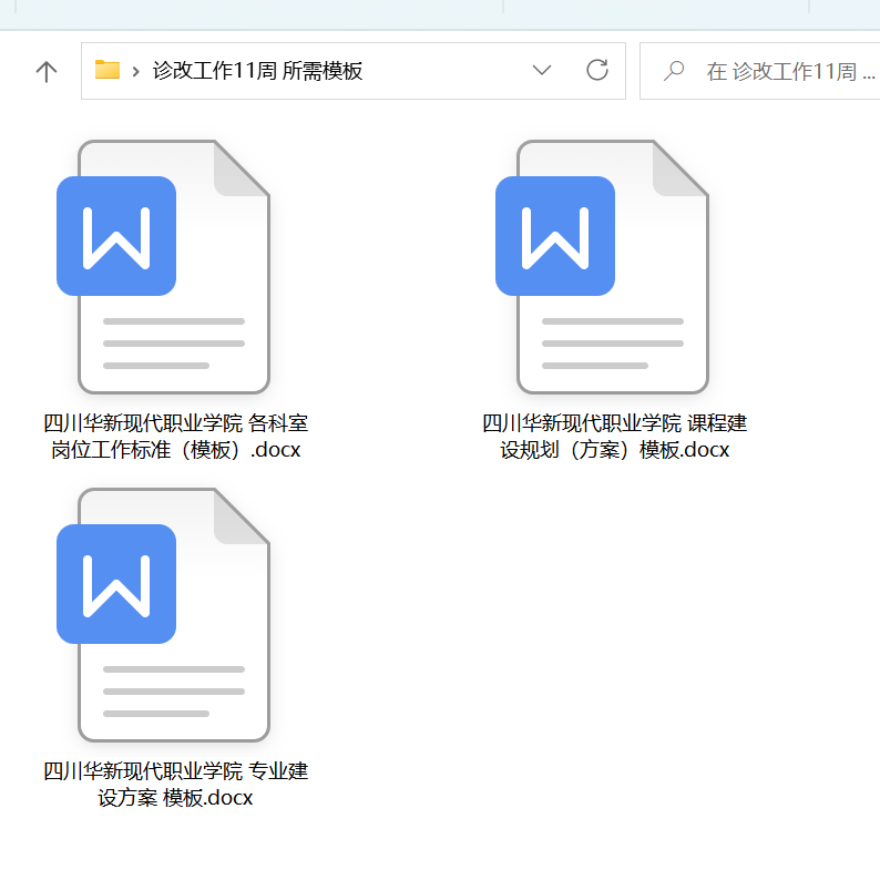 四、诊改办针对各责任部门搜集材料后反馈,整理并提供了《专业建设方案》、《课程建设规划》、《各部门岗位工作标准》模板。