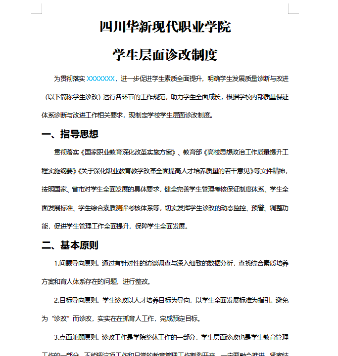 五、撰写《四川华新现代职业学院学生层面诊改制度》初稿。