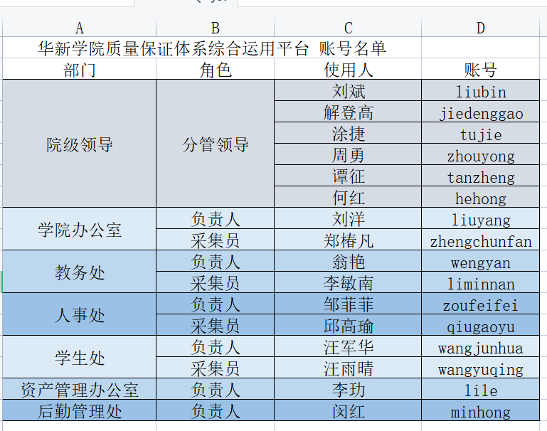 一、根据已确定部门负责人名单,开通质量保证体系综合运用平台账号,以便各部门后期梳理任务上传平台使用。