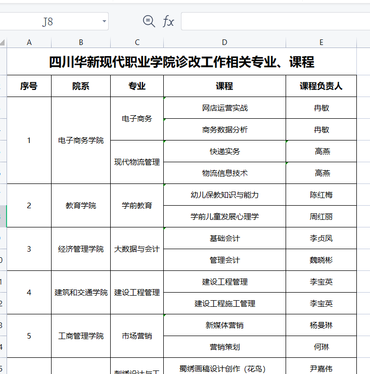 六、经院领导审核,确定了此次参与诊改工作的专业与课程清单,共10个专业,20门专业核心课
