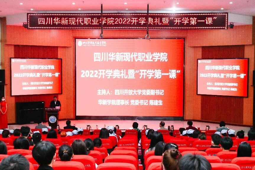 金秋时节,青春启航,谱写华章。10月24日,华新学院隆重举行2022年秋季开学典礼暨开学第一课,活动采用 “线下主会场+分会场+线上直播”的方式举行。四川开放大学党委副书记、校长王玲出席,为开学典礼致辞并讲授开学第一课,华新学院党委书记陈建生主持典礼并讲话,学院党委副书记、院长刘斌为青年志愿队授旗,党委副书记解登高等全体院领导参加。