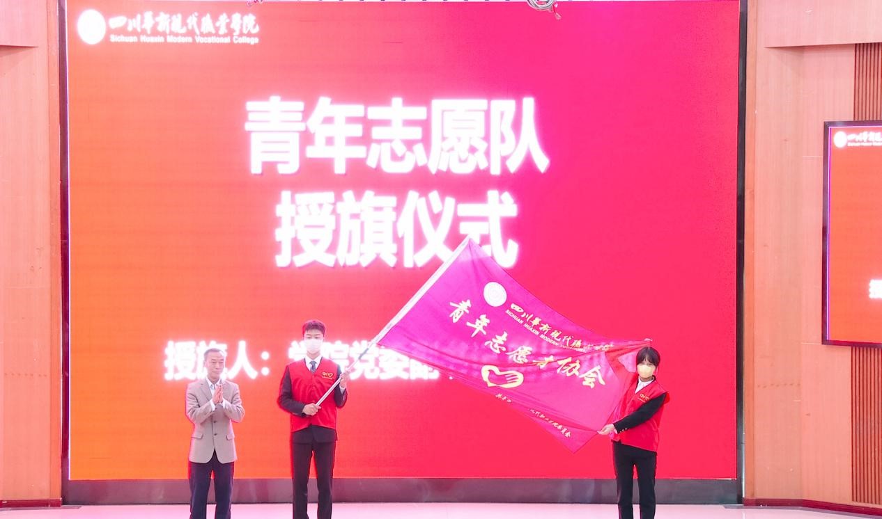 刘斌为青年志愿队授旗,表彰一直以来热衷于志愿服务以及在疫情防控工作中表现突出的志愿者队伍。在严峻复杂的国内外省内外疫情形势下,华新学子主动参加疫情防控志愿服务的工作,在学校、在家乡,体现了当代青年的责任与担当,成为基层联防联控、群防群治的重要力量。他们用行动彰显了华新志愿者的风貌,弘扬了“奉献、友爱、互助、进步”的志愿者精神。