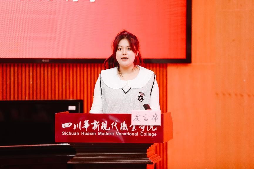 教育学院学前教育3班王颖代表2022级学生代表发言。她回顾了高考时的奋斗时光,分享了自己的大学规划,号召大家在华新点亮梦想,用青春放飞希望,誓要紧握三载韶华,博得佳绩琳琅,续写辉煌篇章。