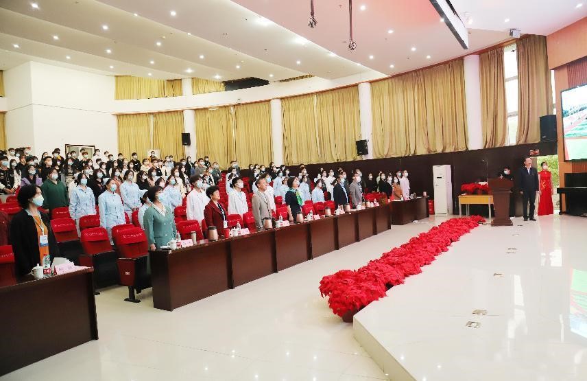会议伊始,全体成员奏唱国歌,伴随着雄壮嘹亮的国歌,2022级新生开学典礼正式拉开序幕。