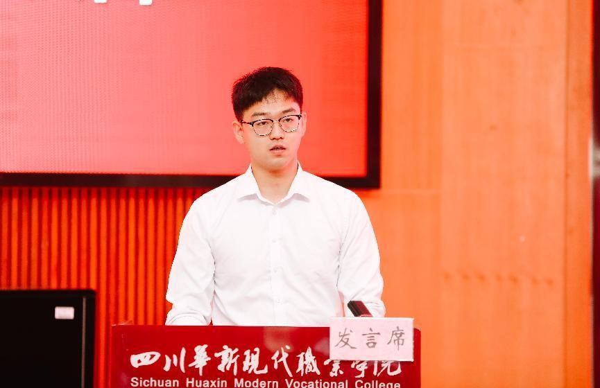 艺术学院影视广告专业2014级学生曾伏龙代表优秀校友发言。“三年学习生活于此,为我的综合发展打下了坚实的基础。今天我以华新为荣,明天华新以我为傲。”他分享了自己的大学期间生活和学习的感悟,对学校和老师的培养表示感谢,勉励同学们要把学习放在首要位置,培养和提升对专业知识的学习兴趣,珍惜当下、刻苦努力,不忘初心、坚守信念,最终实现自己的人生价值。