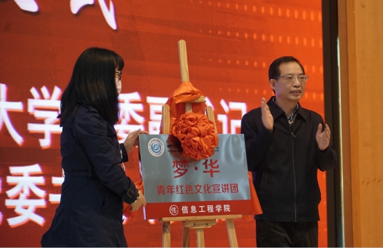 图一 学院党委书记陈建生为“梦华青年红色文化宣讲团”揭牌