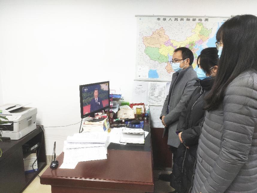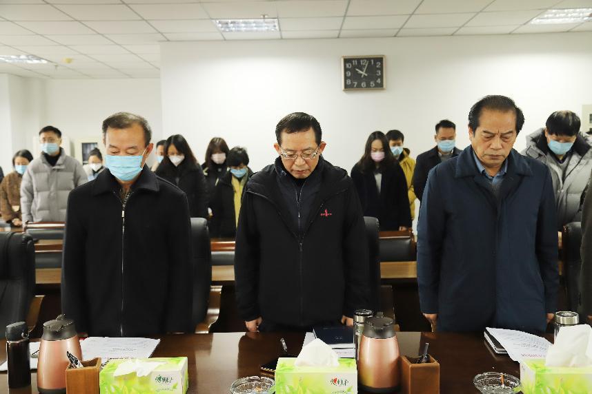 华新学院党委书记陈建生,党委副书记、院长刘斌,党委副书记解登高等院领导及学院中层以上干部在主会场收看追悼会直播。