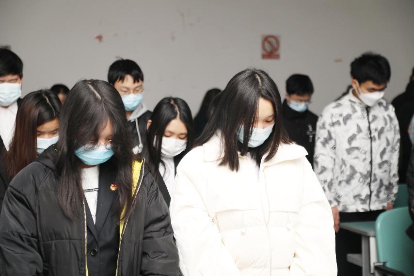 默哀、鞠躬,大会伊始,全体师生在哀乐声中悼念敬爱的江泽民同志。习近平总书记在追悼大会上致悼词。他在悼词中高度评价了江泽民光辉的一生和建立的丰功伟绩,指出江泽民同志把毕生心血和精力都献给了中国人民,为争取民族独立、人民解放和实现国家富强、人民幸福鞠躬尽瘁、奋斗终身。特别是党的十三届四中全会以后的十三年,党和国家取得的巨大成就,同江泽民同志作为马克思主义政治家的雄才大略、关键作用、高超政治领导艺术是分不开的。江泽民同志为党和人民建立了不朽功勋。