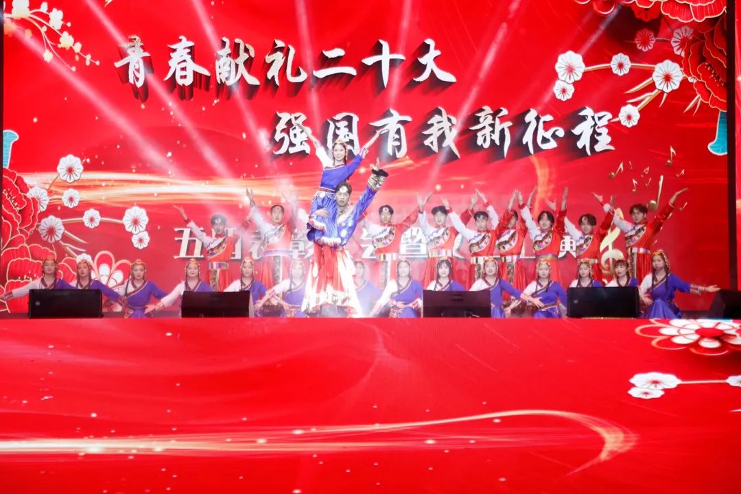 晚上8点,四川华新现代职业学院庆祝中国共青团成立100周年“青春献礼二十大,强国有我新征程”文艺汇演在大学生艺术团带来的民族舞《情满天路》中拉开了序幕。