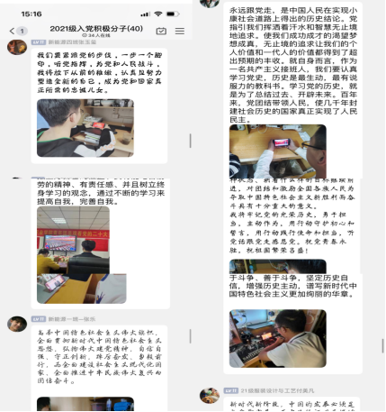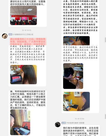 10月16日上午10:00,应用技术学院全体党员和入党积极分子观看了“中国共产党第二十次全国代表大会开幕式”,因周末原因,此次心得学习讨论通过支部的QQ群进行,应用支部的各位党员在支部副书记罗能铮同志的组织下,认真观看了开幕式,并在观看结束后发表了自己的学习心得。