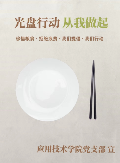 疫情防控期间,物资相对紧张,学校每天要送餐3000多份,早中晚各三餐,里面饱含了学校的财力、物力,更饱含了志愿者师生们的心血。为此,支部及时倡议:呼吁大家珍惜粮食,不浪费食物,践行“光盘行动”。