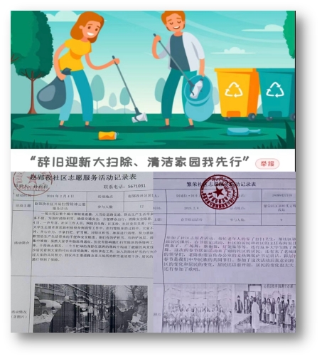 2023级的护理13班黄思颖和护理15班阿迪拉,构建“人人参与、人人共享”的社区发展治理理念,提升人民群众的幸福感和获得感。两位同学在寒假期间,投身于社区活动中,黄思颖同学铲除积雪为保持道路行驶的安全,阿迪拉同学协助社区的居民开展广场舞,旗袍舞,灯笼舞娱乐活动。