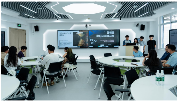 决赛采取“现场阐述+作品展示”的双重考核形式。各小组围绕作品创意、拍摄手法、后期制作、传播策略等维度展开路演,并播放完整短视频作品。评委团根据内容创新性、技术完成度、运营可行性及现场表现进行综合评分。