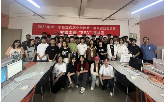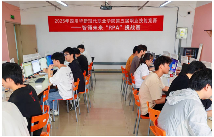 2025年5月10日,四川华新现代职业学院第五届职业技能竞赛——"智领未来·RPA挑战赛"在明德楼三楼智慧机房火热开赛。来自计算机与大数据学院、智能制造学院等专业的39名大一、大二学子组成13支战队,在长达五小时的巅峰对决中展开激烈角逐。赛场上,各团队以默契协作破解技术难题,用创新思维攻克复杂场景,充分展现了新时代技能人才的青春风采与专业实力。