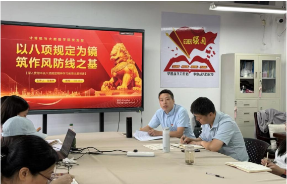 为深入推进全面从严治党,强化党员作风建设,提升教师对华新职院及计算机与大数据学院规章制度的认知与执行力。6月25日,计算与大数据学院党支部开展了主题为“以八项规定为镜,筑作风防线之基”的党课及规章制度学习,引导部门全体老师以中央八项规定精神为指引,锤炼党性修养,筑牢思想防线。