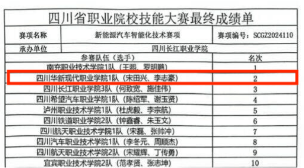 新突破!华新学院获四川省职业院校技能大赛(高职组)新能源汽车智能化技术赛项一等奖