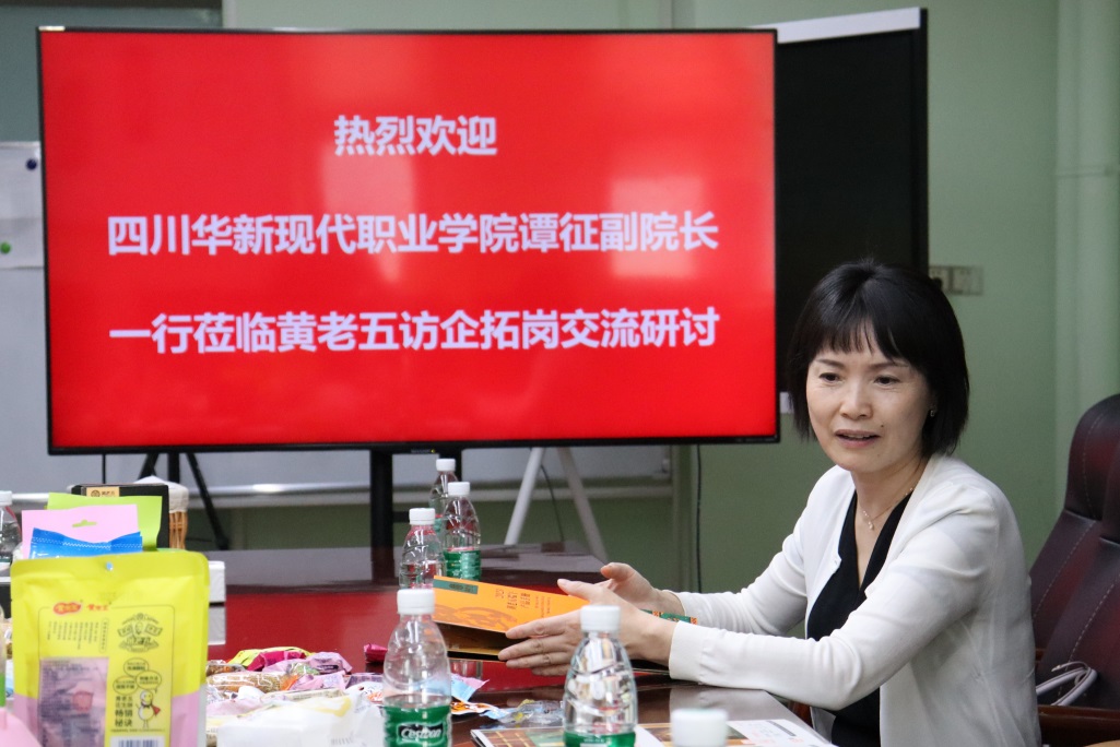 最后,谭征一行来到黄老五食品股份有限公司,党支部书记胡重波热情接待,双方就人才培养、校企合作模式等进行了深度交流。