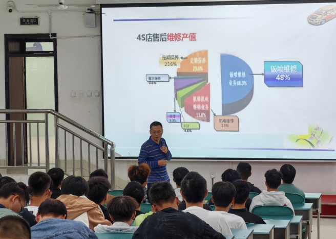 汽车检测与维修技术专业负责人介绍了汽车市场规模、专业定位、就业前景、人才培养目标、维修人员素质、专业课程体系、岗位职业能力要求、职业规划与职业道德等关乎同学们一生的职业发展等方面的专业内容,详细解答学生的疑问等。