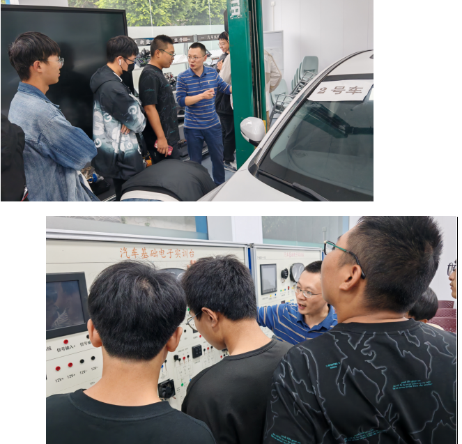 汽车检测与维修技术专业负责人带领2024级新生参观了校内汽车实训室,让学生了解实训室分布情况、功能、实训设备布置与汽车检测与维修专业实训相关的车型、台架、设备、工量具等。