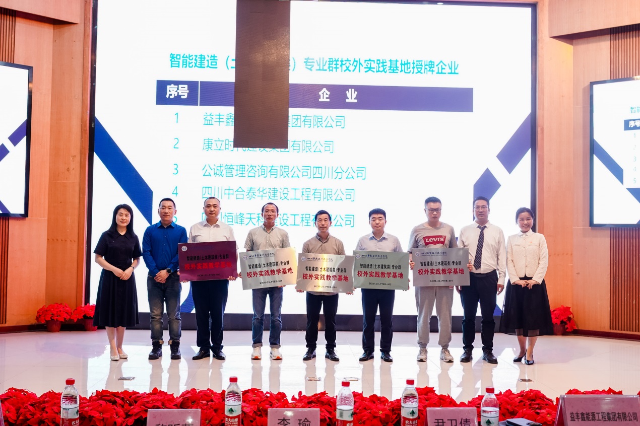 智能建造(土木建筑类)专业群有建筑工程技术、建设工程管理(BIM智能建筑)、工程造价三个专业,围绕专业群校内实训室建设3个:包含工程管实训室、BIM实训中心和建筑工程实训中心(五大工种实训)。校外实践基地有与中科建工程检测有限公司、康立时代建设集团、成都徕拓测绘工程有限公司等建立了稳定的合作关系。