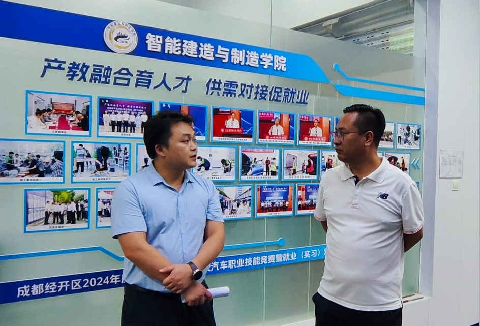 2025年9月5日下午,智能建造与制造学院邀请了成都市经开区(龙泉驿区)新经济和科技局贺斌和电子科大天府(龙泉驿)低空经济协调创新中心主任、博勒科技(成都)集团有限公司董事长吴涛来我院指导“新能源汽车动力电池科普基地”建设,并洽谈“新能源汽车三大电检测与测试基地产教融合项目”校企合作事宜。