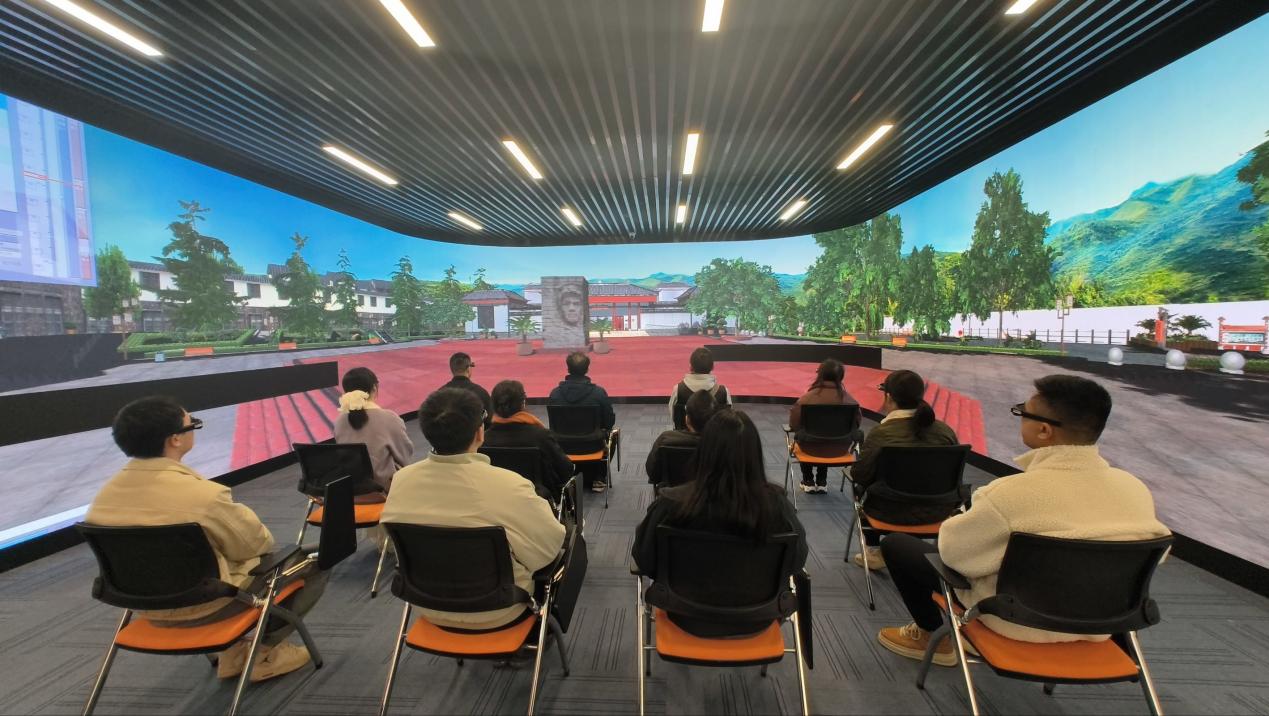 随后,支部党员前往思想政治教育虚拟仿真实训基地。该基地依托三维虚拟仿真、VR 等现代信息技术,打造了沉浸式、交互式的思政教学场景,将红色历史、理论知识转化为可体验、可感知的虚拟实践课程,有效破解了传统思政课堂 “理论抽象化”“体验单一化” 的痛点。在基地工作人员的演示下,党员们体验了红色历史场景还原、思政理论互动推演等教学模块,深刻感受到虚拟仿真技术赋能思政教育的创新价值,并就如何将技术手段与思政课程深度融合、提升育人实效展开了现场探讨。