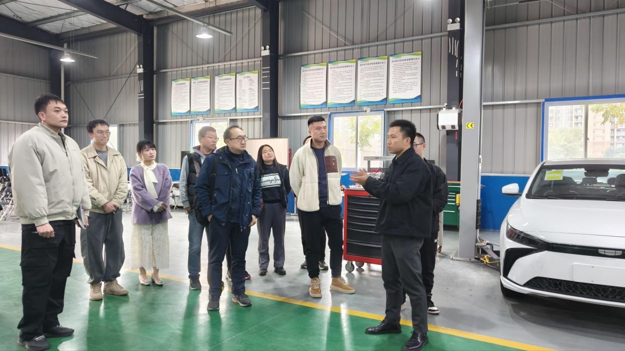 在四川省志翔职业技术学校副校长田野、党校办主任严玉娟及第四党支部部分委员的带领下,智能建造与制造学院支部党员们首先走进李万楷汽车维修省级技能大师工作室。作为学校技能人才培养的核心阵地,该工作室聚焦汽车维修领域高技能人才培育,整合了行业前沿技术与实战教学资源。参观过程中,李万楷大师详细介绍了工作室的建设理念、技能传承模式及校企合作成果,展示了从基础维修技能实训到复杂故障诊断攻关的全流程教学体系,党员们近距离观摩了师生实操演练场景,对工作室 “以技育人、以匠铸魂” 的培养模式给予高度评价。