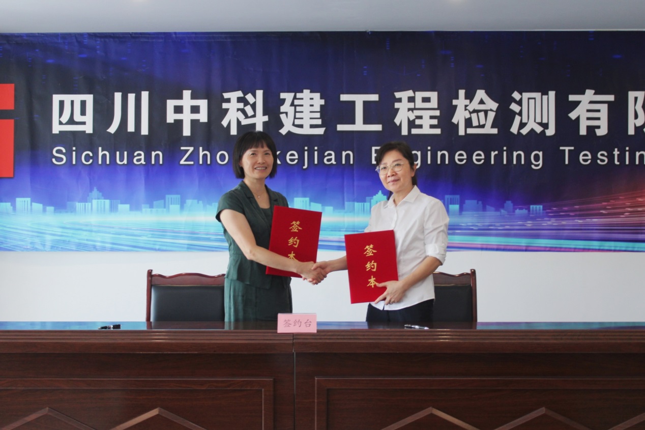 授牌仪式结束后,由谭征和魏艳春代表校企双方进行签约仪式,中科建副总经理聂飞表示,希望以此次合作为契机和起点,依靠学校的教育资源优势,构筑校企联营的合作平台,努力为公司培养更多理论知识扎实、管理能力优秀负有创新意识的实用性检测人才,促进公司高质量高品质发展。