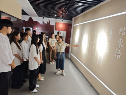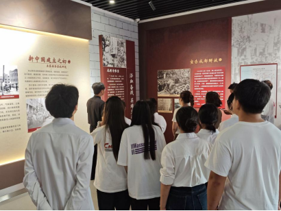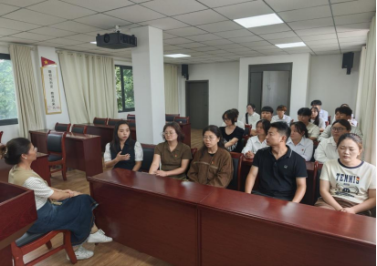 在参观过程中,陈书记特意驻足在纪念馆内墙前,以墙上展示的烈士事迹、历史文献和珍贵影像为“活教材”,为全体成员现场讲授了一堂生动而深刻的党课。她指着一幅记录着当地烈士参与抗日游击战的黑白照片,详细讲述了照片背后烈士们冒着枪林弹雨、守护家乡百姓的感人故事,“这位烈士当时年仅 22 岁,面对敌人的围剿,他主动请缨担任掩护任务,最终为了掩护战友撤退,壮烈牺牲。他用年轻的生命诠释了什么是‘为人民服务’,什么是共产党人的初心和使命。” 随后,书记又结合墙上镌刻的革命精神论述,引导大家思考:“在新时代,我们虽然远离了战火纷飞,但先烈们的精神从未过时。作为教育工作者,我们要把这份精神融入课堂,培养出有理想、有担当的新时代青年;作为入党积极分子和学生干部,更要以先烈为标杆,把个人理想与国家发展紧密结合,让红色基因在青春岁月中绽放光芒。”