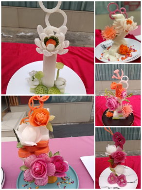 11月21日,文创旅游学院烹饪工艺与营销专业开展了题为“百花争艳,迎冬食品雕塑22级烹饪工艺学生花卉月度作品展示”。本次展示是以花卉为主题的食品雕塑作品展,由22级烹饪专业的同学操刀制作。