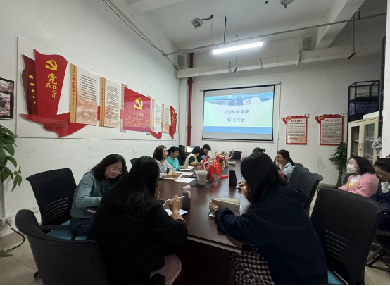 4月1日,文创旅游学院召开了一场部门大会,对近期本学院重点工作进行了部署。参加本次会议的有文创学院院长张丽妍、书记陈丽玉、副院长王娟以及全体教师。