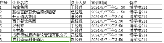 2024年5月7日下午,文创旅游学院烹饪专业群举办烹饪专业专项招聘会。此次招聘会吸引了众多知名餐饮企业和用人单位前来参与,为烹饪专业学子提供了丰富的就业机会和广阔的发展空间。本次专业招聘会有首旅集团、荔波官酒店、开元酒店、西贝集团、好利来、乡村基、锦城廊桥、盛美利亚酒店等八家餐饮、酒店企业参加,主要招聘岗位为中餐后厨、中西面点、前厅接待等烹饪专业相关岗位。