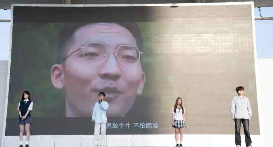 活动中,学生代表深情演绎诗朗诵《青春与旗帜》,通过跨越百年的“时空对话”,将五四先驱的呐喊与当代青年的宣言交织共鸣。“我听见1919年的街头,呐喊声震碎黑暗;我看见2025年的晨曦,奋斗者擎起旗帜……”铿锵诗句传递出薪火永续的信念,引发强烈共鸣。仪式尾声,全体师生齐声高唱《风华正少年》,以青春之歌铭刻奋斗誓言,将现场气氛推向高潮。