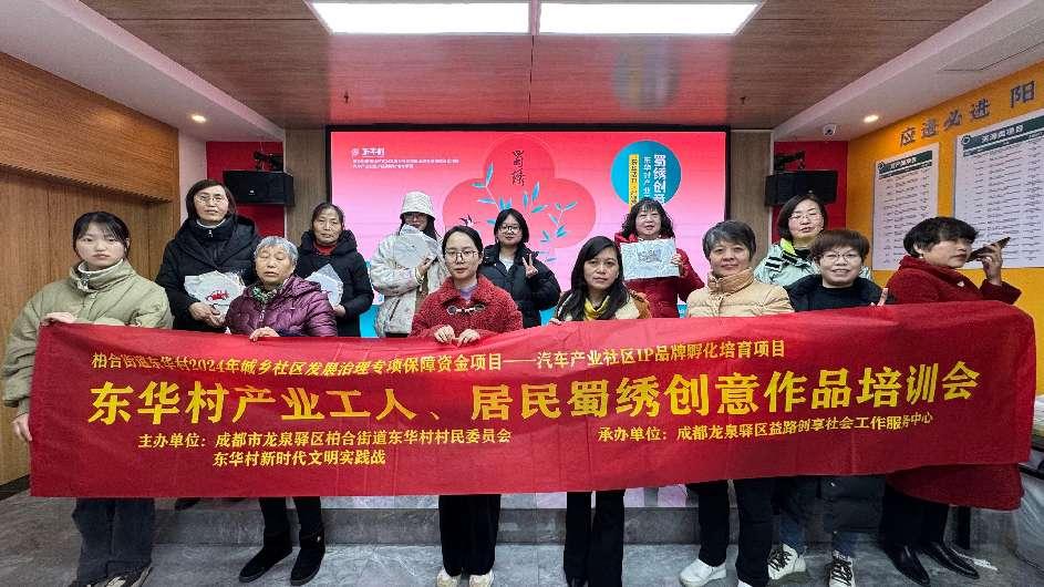 近日,四川华新现代职业学院文创旅游学院蜀绣专业师生团队走进龙泉驿区东华村汽车产业社区,通过非遗技艺赋能社区品牌建设,开展了一场别开生面的“蜀绣创意作品专项培训会”,助力该社区IP品牌孵化培育项目落地。