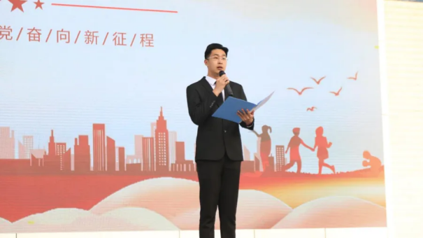 主持人张宸在仪式最后说道:“现在,五星红旗已经高高挂起,历史的火炬已经传到我们手中,伟大的事业已经落在我们肩上。习近平总书记曾激励广大青年:要爱国爱民,从党史学习中激发信仰、汲取力量,树立为祖国为人民永久奋斗、赤诚奉献的坚定理想;要锤炼品德,矢志追求更有高度、更有境界、更有品位的人生;要勇于创新,以聪明才智贡献国家,以开拓进取服务社会;要实学实干,在攀登知识高峰中追求卓越,在肩负时代重任时行胜于言。要立大志、明大德、成大才、担大任,努力成为堪当民族复兴重任的时代新人,让青春在为祖国、为民族、为人民、为人类的不懈奋斗中绽放绚丽之花!”