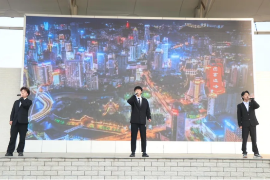 文创旅游学院王可尚、吴星默、薛鹏歌唱《未来我来》,三位同学用自己铿锵有力的声音,表达出五四薪火已经传到了我们手中,我们生逢盛世,肩负重任。