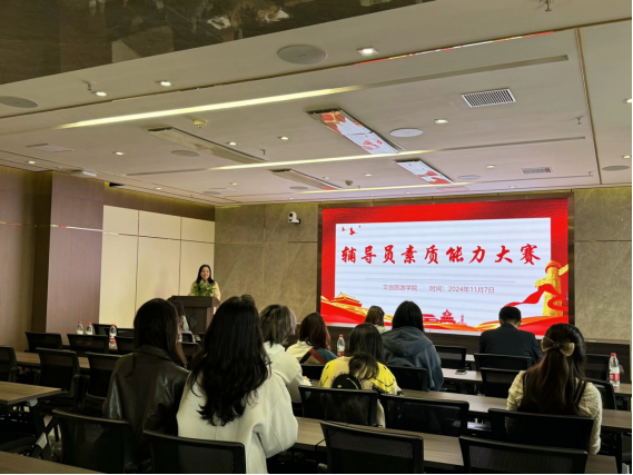 辅导员是大学生成长成才的人生导师和健康生活的知心朋友,是学生成长道路上的引路人,他们肩负着重要的责任和使命。2024年11月7日上午,文创旅游学院举办了2024年辅导员素质能力大赛,学工部副部长彭娟、文创旅游学院党支部书记陈丽玉、院长张丽妍、副书记任勇军以及全体辅导员们,共同见证辅导员们在素质能力方面的精彩展示。