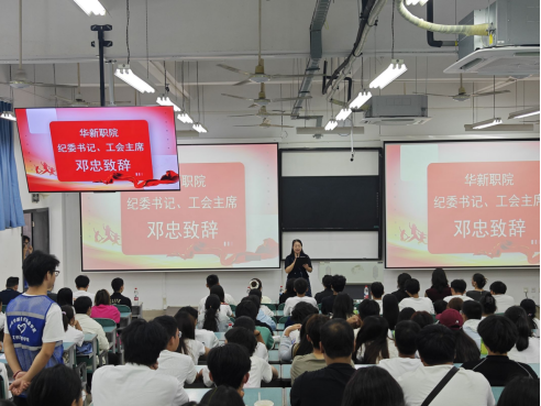 在致辞环节,纪委书记、工会主席邓忠结合学校发展历程与育人理念,为新生们描绘了大学学习生活的美好蓝图,并提出殷切期望,鼓励新生们珍惜大学时光,树立明确目标,在学习与实践中提升自我。邓书记的话语温暖而有力,让新生们感受到了学校的关怀与期许。