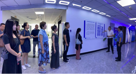 在副总经理弓建明的引导介绍下,周勇一行参观了四川省文旅数智制造产教融合示范基地,该基地涵盖虚拟现实元宇宙技术中心、项目孵化中心、文旅大数据技术中心、AI数智直播中心、XR沉浸式场景制造中心等。