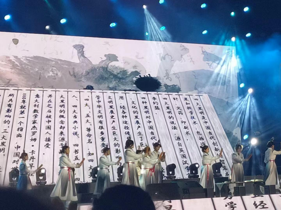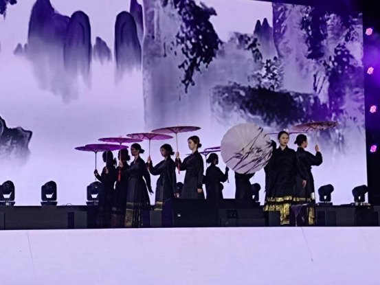 笔墨舞挥洒自如,“笔走龙蛇书意气,墨舞霓裳绘丹青。”舞者化身墨之精灵,以肢体作笔杆,于舞台的素笺上挥毫泼墨。舞步蹁跹,刚柔并济,尽显东方艺术的神韵与风骨。