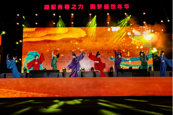舞台上,灯光璀璨,似梦幻的霓虹,交织出绚烂的画卷。舞蹈节目活力四射,演员们用灵动的舞姿,展现着青春的热血与激情。