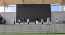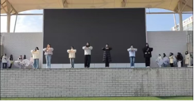 为了呈现出更好的舞台效果,同学们利用课余时间进行编排,杨婷婷老师全程指导。在冗长的排练中,每一个动作都像是在荆棘丛里艰难寻路,重复再重复,疲惫在身体里层层堆积,却仍要咬牙坚持,仿佛只有汗水能证明我们对完美的执着。