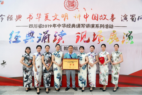 图一 2019年5月四川省中华经典诵读活动教师组获奖合影(左2)
