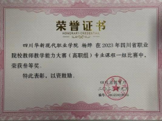 此外,她还代表学校参加了四川省教师教学能力大赛,并获得了三等奖。这一成绩的取得,不仅是对她教学能力的进一步肯定,也表明她的教学方法和教学理念在更广泛的范围内得到了认可。她的课堂,如同一座知识的殿堂,吸引着学生们在其中自由探索、发现新知。