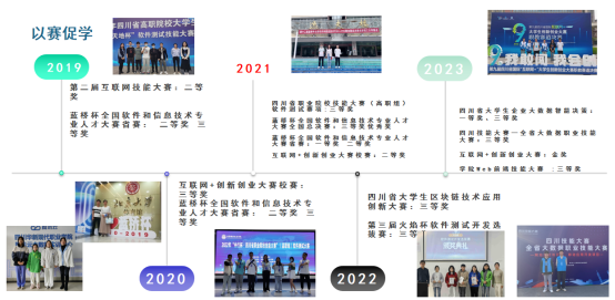 作为大数据技术专业负责人,雷莹老师带领团队积极参与各类学科竞赛,主要包括区块链、大数据、软件测试、互联网+、程序设计等方面,学生们在她的悉心指导下获得了教育厅和人社厅举办的各项比赛奖项:2023年,在第九届四川省国际“互联网+”大学生创新创业大赛获得职教赛道金奖,在四川省大学生企业大护具智能决策大赛中获得一等奖和三等奖;2022年,在四川省职业技能大赛和区块链技术应用开发中分别获得三等奖;2021年,在蓝桥杯全省软件和信息技术专业人才大赛中获得国赛三等奖、省赛一等奖和二等奖,职业院校技能大赛软件测试三等奖。雷莹老师喜欢和学生待在一起,见证学生的成长,他常利用业余时间投入到学生的培训工作中,倾心教授比赛内容,引导学生们不断提升自我,挑战自我。她的辛勤付出,不仅在学生们的成长路上留下了浓墨重彩的一笔,更为学院的教学质量提供了有力支撑。学生也通过赛前培训和比赛,在专业技能上有所突破,培养团队合作意识和创新思维,为未来的发展打下坚实的基础。
