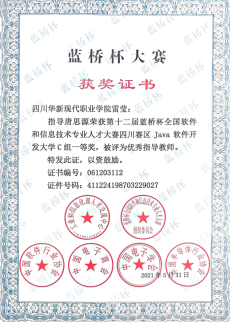 雷莹老师积极参加学科竞赛和教学能力大赛,不断提升自己的专业技能和教学水平,2018年和2020年参加教育厅主办的四川省高职院校教师教学能力大赛,均获得三等奖,2022年和2023年参加四川华新现代职业学院举办的教师教学能力大赛,分别获得了二等奖和一等奖。2023年,获得四川省人力资源和社会保障厅主办的职业技能大赛人工智能赛项中获得职工组三等奖。