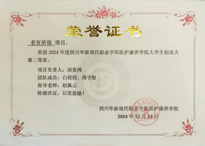 白程程作为专利发明人之一和公司创始人之一,积极参与科研创新。她作为核心成员参与“孕美如初”团队,在2025年四川省国际大学生创新大赛中荣获银奖,体现了较强的创新能力和团队协作精神。