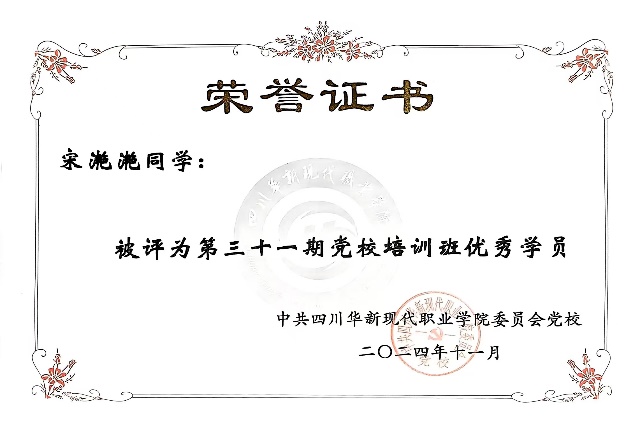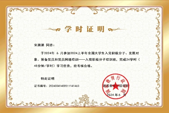 宋滟滟同学在思想上坚决拥护中国共产党的领导,积极参加学院党支部活动、青年马克思主义培训班和党校培训,深入学习习近平新时代中国特色社会主义思想,努力增强“四个自信”、坚定“四个意识”、做到“两个维护”、领悟“两个确立”,不断提高自己的思想政治觉悟,积极向党组织靠拢,先后获得了青马工程“优秀学员”和党校“优秀学员” 称号。
